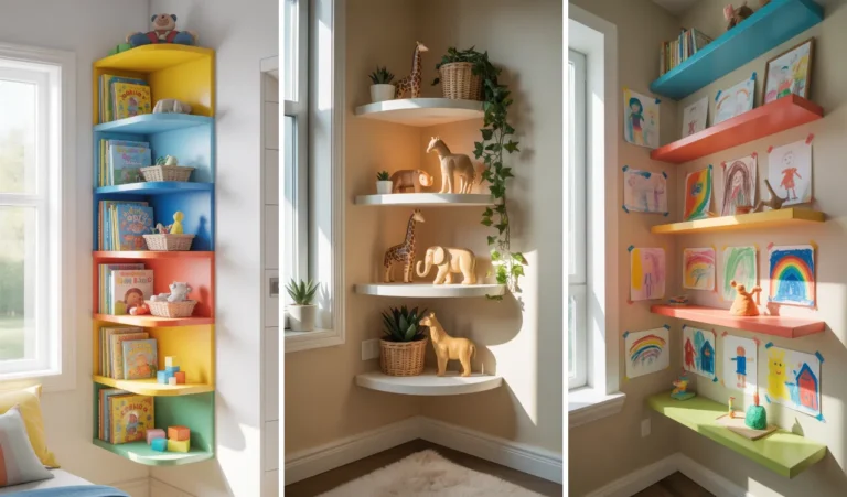 Colorful floating corner shelf decor ideas for kids rooms are a smart way to add storage, style, and personality without …