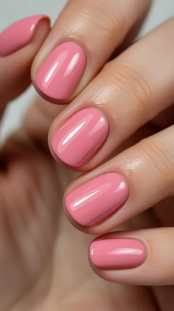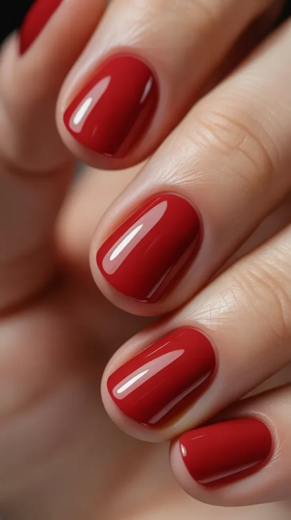 A strawberry red-pink shade sits between pink and red, giving you the best of both worlds. It looks flirty, fresh, and perfect for Valentine’s Day. This shade is great if you can’t decide between classic red and cute pink. It also looks beautiful on short nails because the color feels bright but not too heavy.