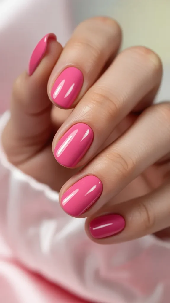 To keep it affordable, you can wear hot pink as a full solid color without extra designs. It still looks complete and stylish. If you want a longer-lasting result, apply thin coats and let them dry fully between layers. This is a cost-effective method that prevents smudges and wasted polish, making it a smart purchase choice for at-home manicures.