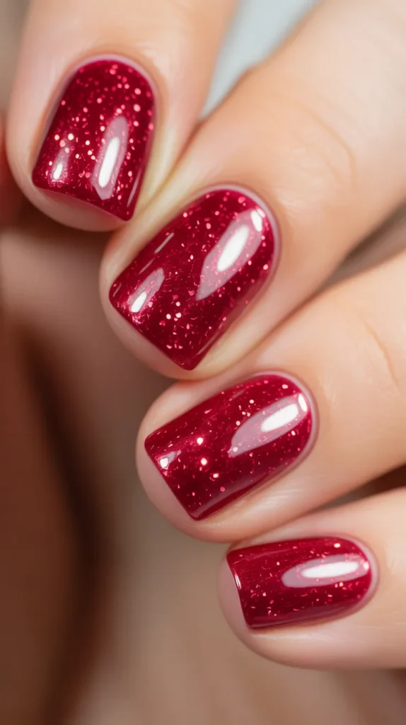 This is a smart investment shade because glitter polish often lasts longer than regular polish. Small chips are harder to see, which makes it more cost-effective. For a budget-friendly option, apply red glitter only on one or two nails as accent nails. That way, you use less product while still getting a cute, eye-catching manicure.