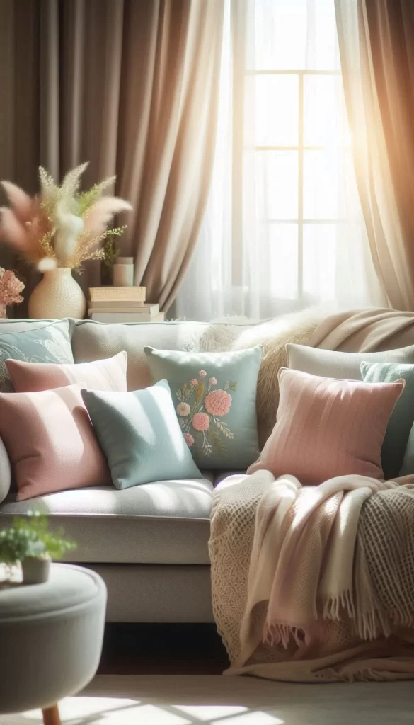 - Select throw pillows in your favorite spring colors, such as soft pink, lavender, mint, or coral.