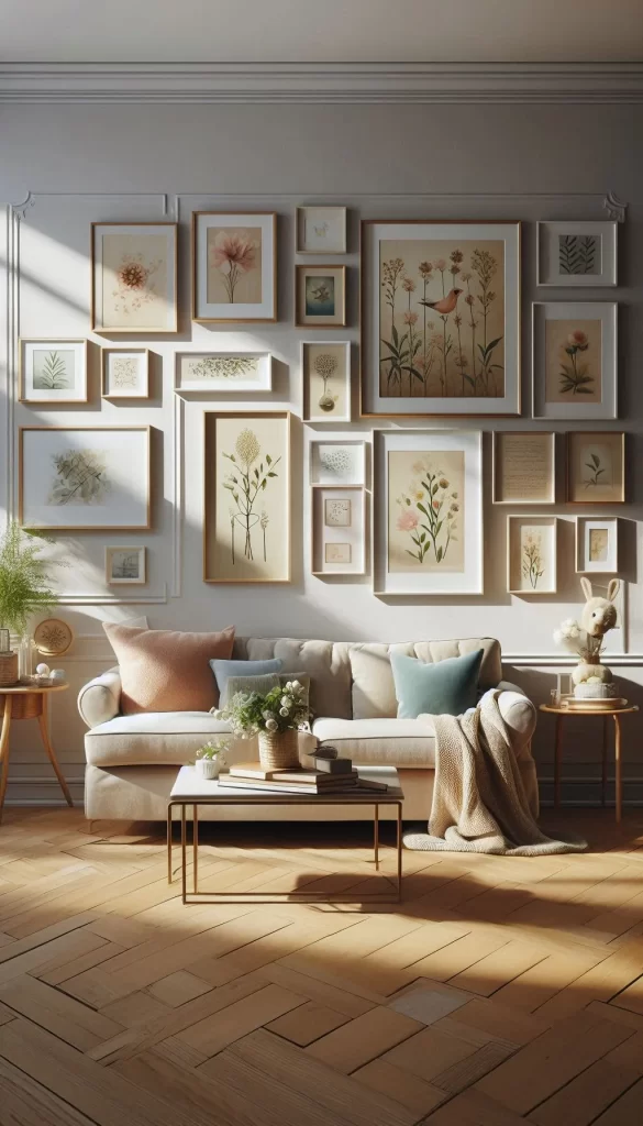 A gallery wall filled with spring-inspired prints and photos can completely transform a room. This is a perfect project for those who want to add personality to their walls without spending too much.