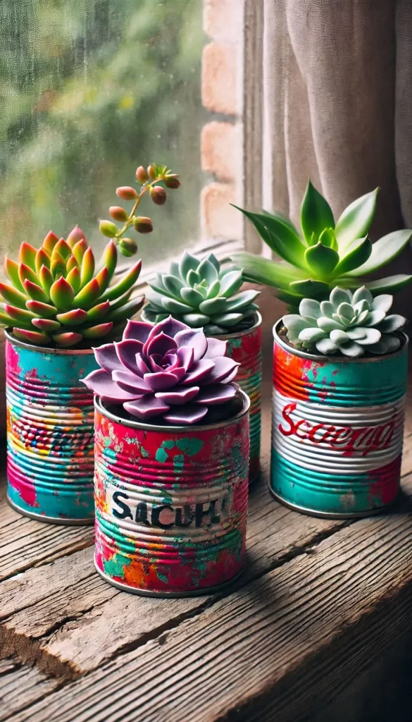 - Plant indoor plants like succulents, herbs, or small flowers in your new recycled planters.