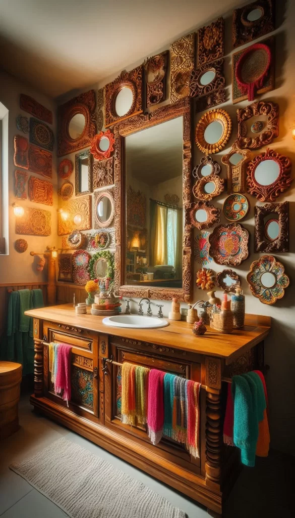 - Ornate Mirrors and Fixtures: Choose mirrors with decorative frames and vintage-style faucets and lighting.