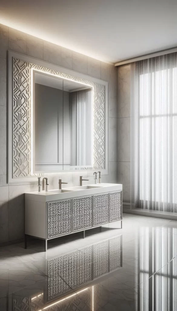 - Mirrored Surfaces: Use mirrored cabinets or decorative mirrors to add sparkle.