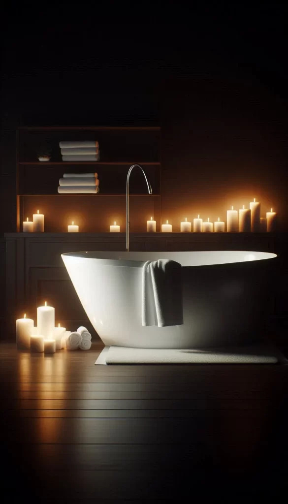 - Soft Lighting: Use dimmable lights and candles to create a relaxing ambiance.