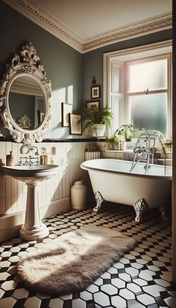 - Patterned Floor Tiles: Consider black and white checkered or other classic patterned floor tiles.