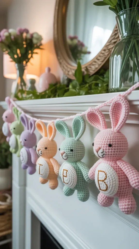 1. Classic Pastel Bunny Crochet Garland