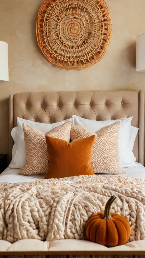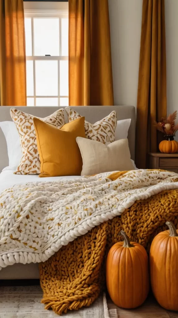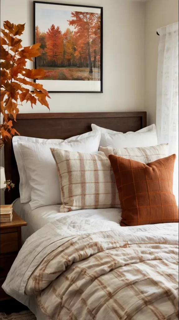 - Choose 2–3 decorative pillows with autumn motifs.