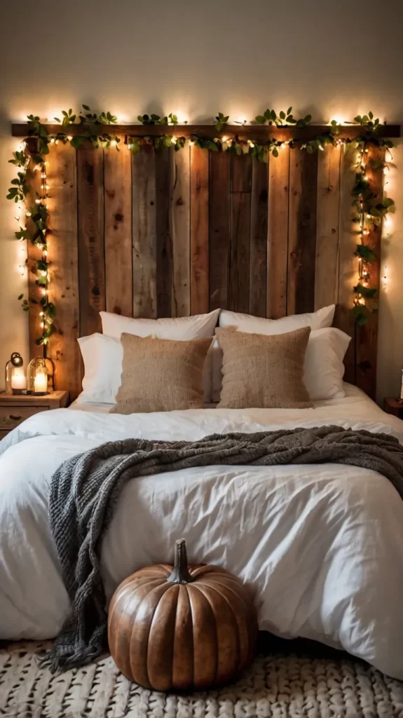 Add a leaf or pumpkin garland to your headboard or above your bed.