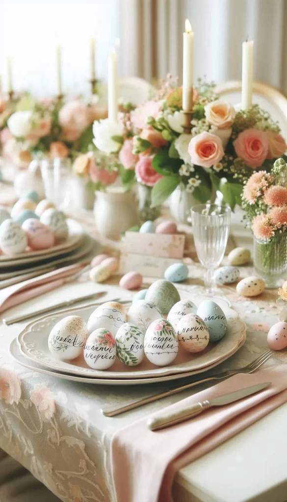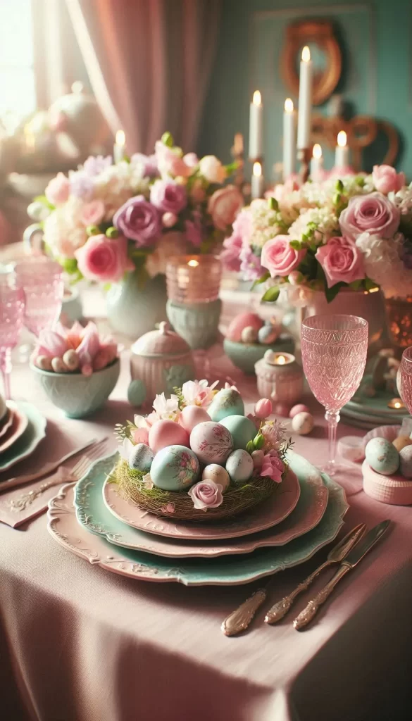 Create a soft and inviting Easter table by using a pastel color palette. Think shades of pink, mint green, lavender, and baby blue.
