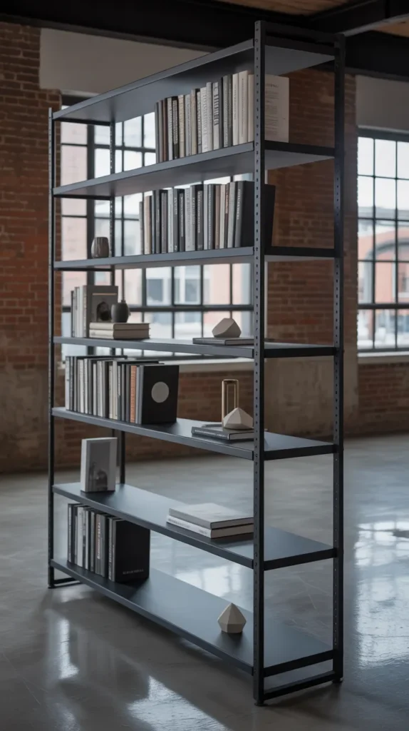 5. Black Matte Epoxy Industrial Bookshelf
