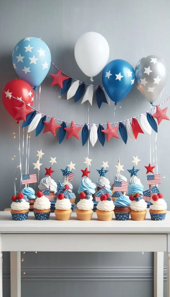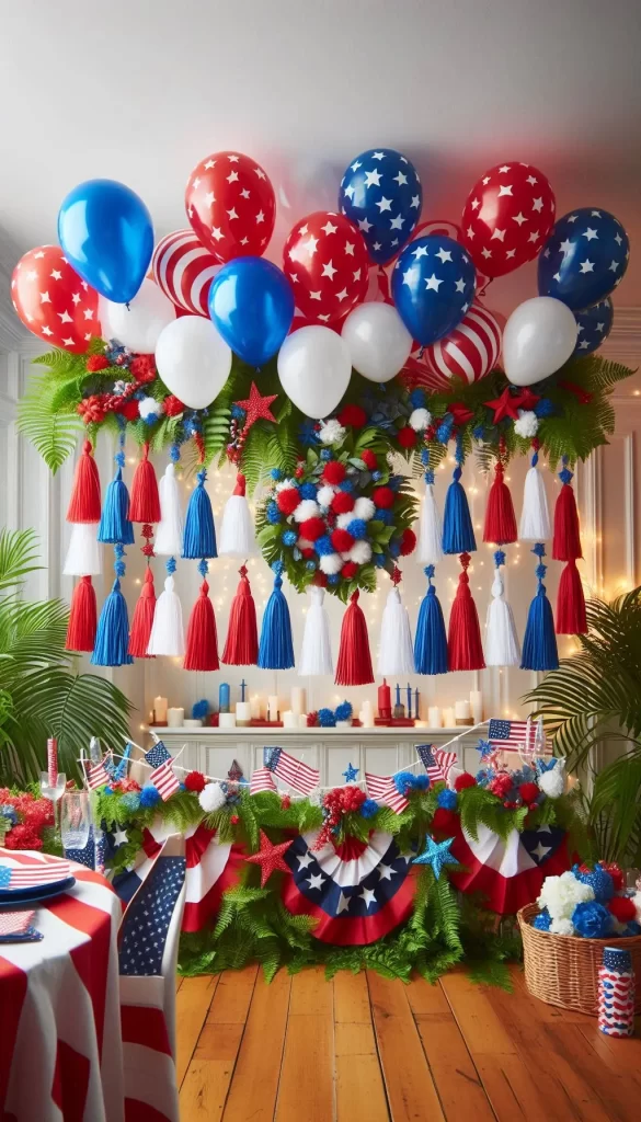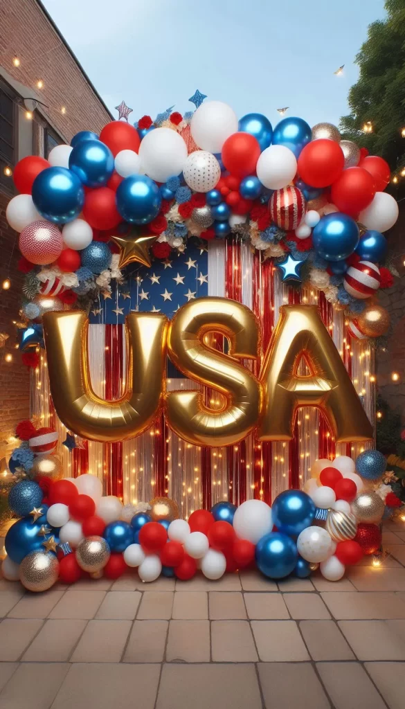 Add oversized “USA” letter balloons to your garland for bold messaging.