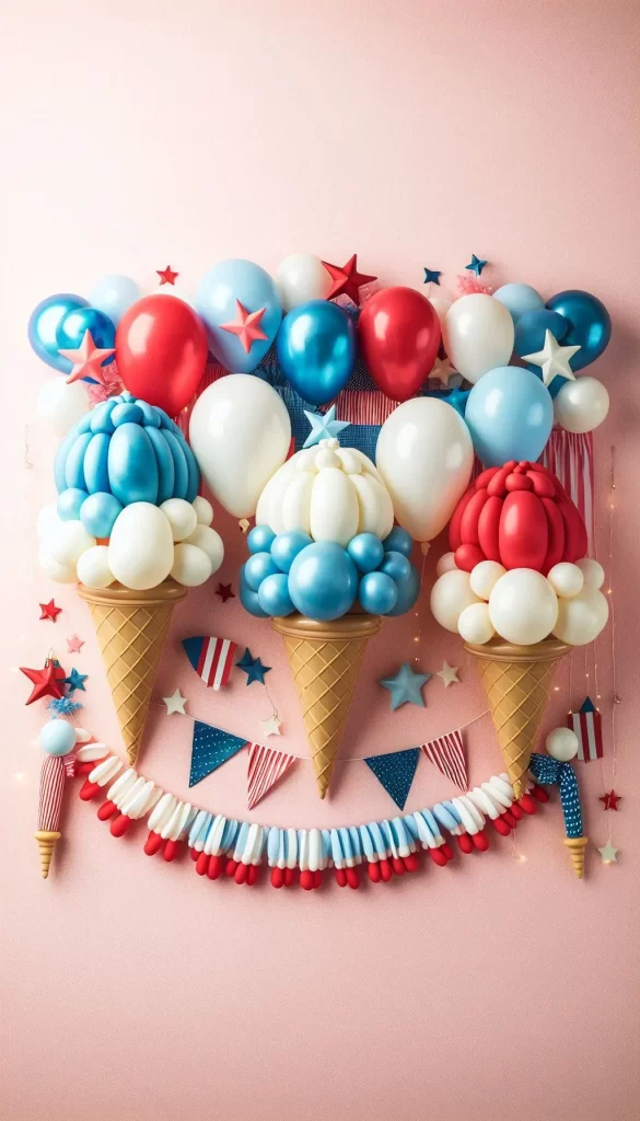 Add fun to the mix by turning balloons into “ice cream cones” using paper cones.
