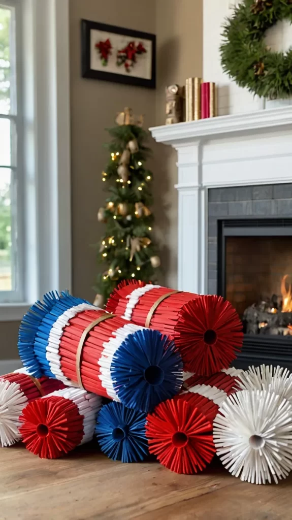 Make playful firecracker decorations to stand on your hearth or mantel.