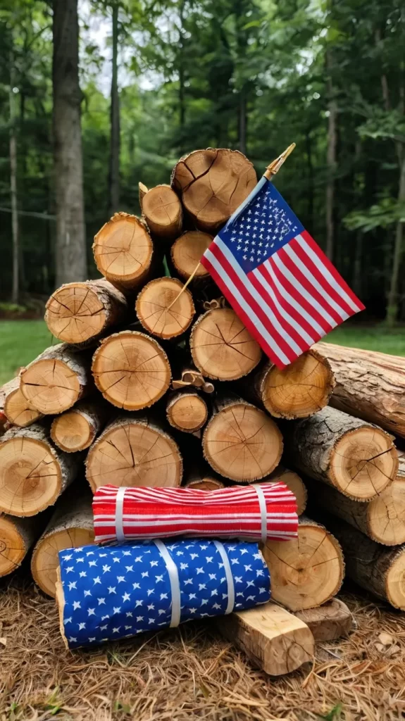 Decorate your firewood stack with red, white, and blue ribbons and mini flags.