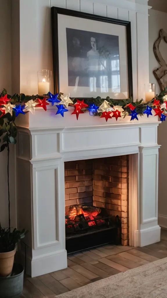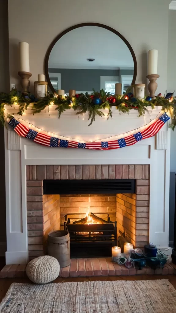 A classic yet vibrant way to add patriotic flair is with a garland in the traditional colors draped over your mantel.