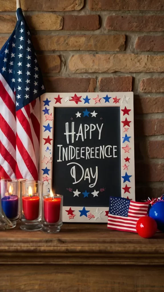 13. Star-Shaped Chalkboard Sign with Patriotic Message