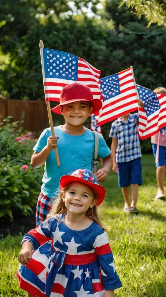 Host a backyard parade with kids waving American flags and wearing festive gear.