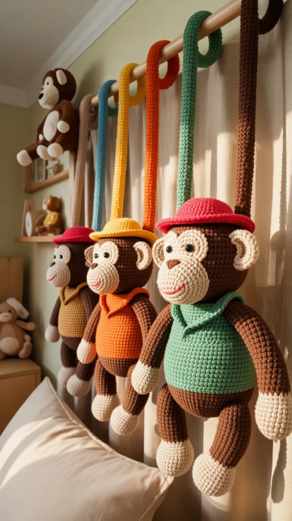 Monkey crochet curtains feel playful and energetic. These designs are great for creative homes and fun bedrooms.