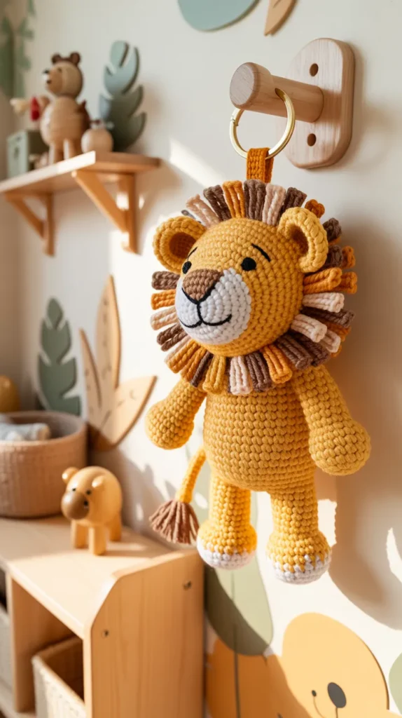 A lion crochet keychain brings bold style in a small size. The yarn mane adds texture and makes the design stand out. It works well for jungle-themed kids rooms, car decor, or creative backpacks.