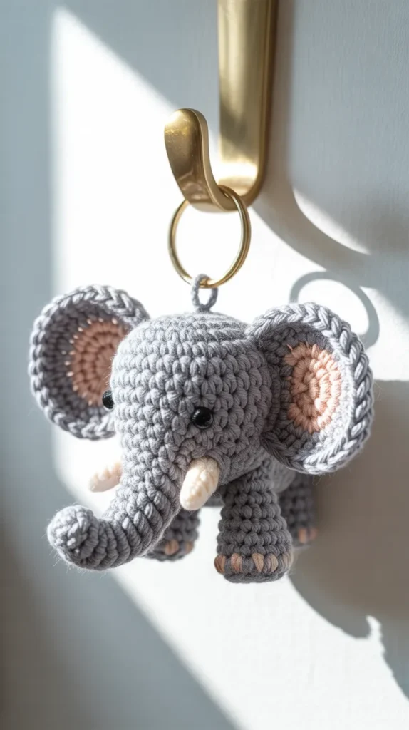 2. Mini Elephant Crochet Keychain