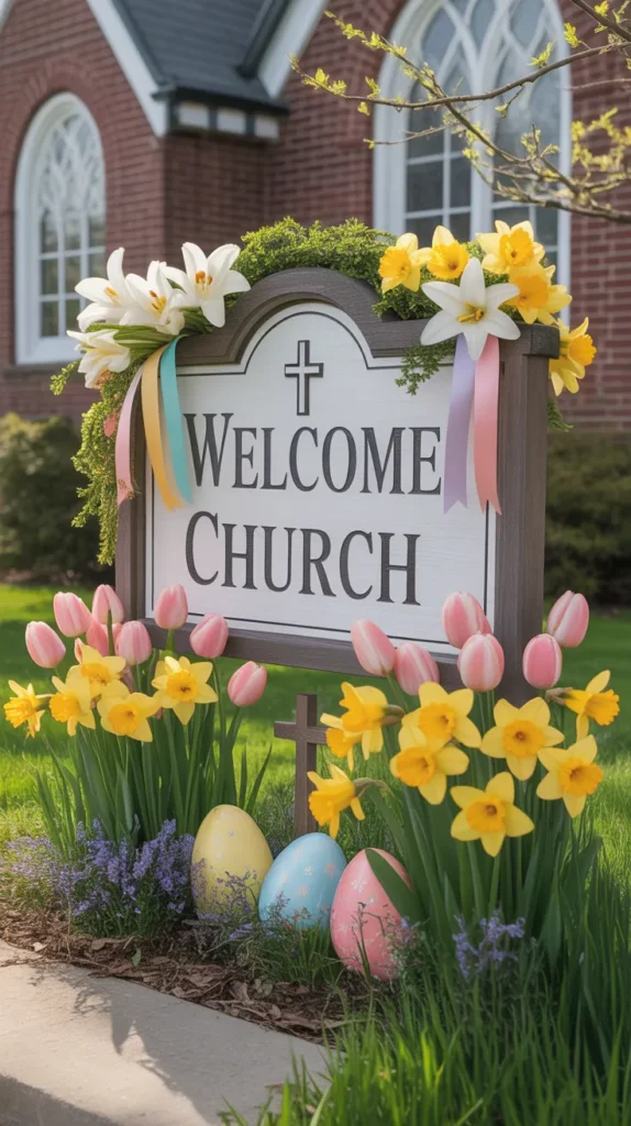 It’s also a meaningful way to involve families and make Easter feel community-driven. This idea proves that beautiful church decor doesn’t need a big budget.