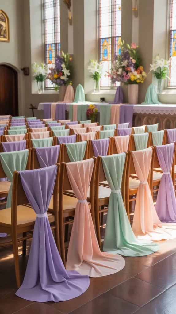 Cover front-row chairs or choir seating with pastel fabric for subtle color. This is an easy way to refresh old furniture without replacing it.