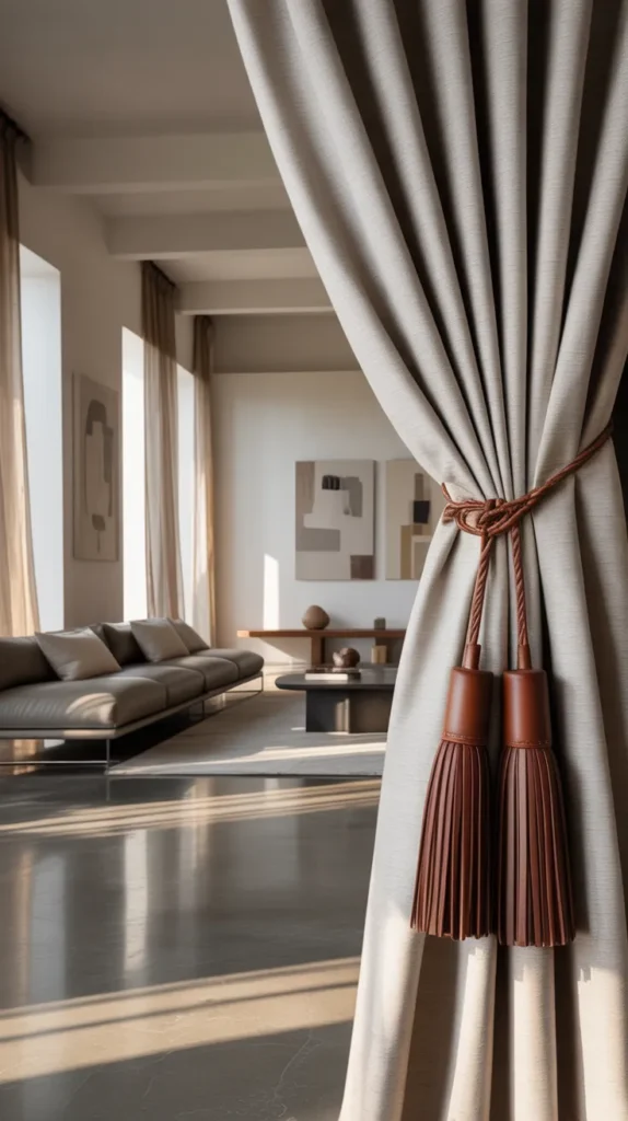 Leather tassel tiebacks bring a sleek and modern edge to your curtains. They pair well with neutral or industrial-style interiors.