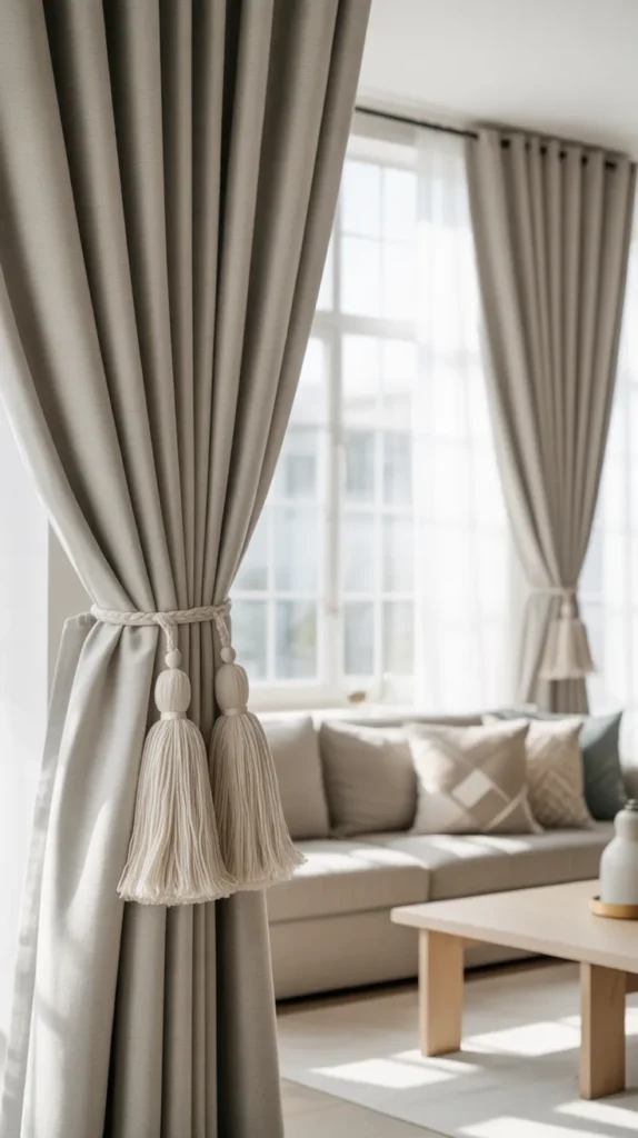 Neutral cotton tassel tiebacks are perfect for modern and minimalist homes. Colors like beige, cream, and soft gray blend well with light curtains and create a clean, calm look.