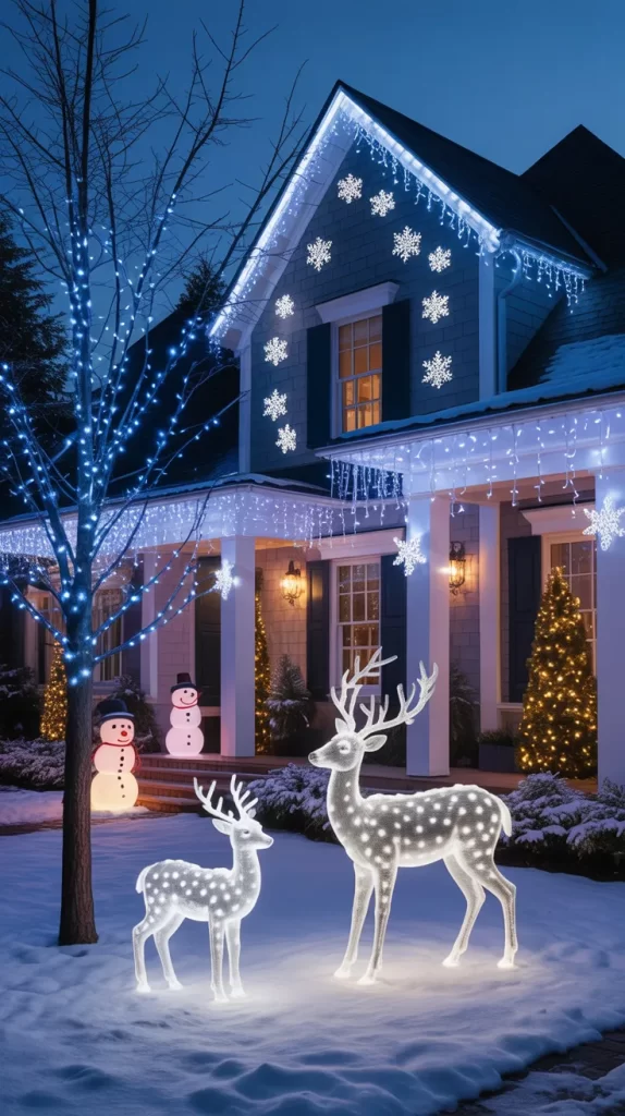Light up your yard with blue fairy lights or LED icicle lights. The cool glow gives your home a frosty, magical curb appeal.