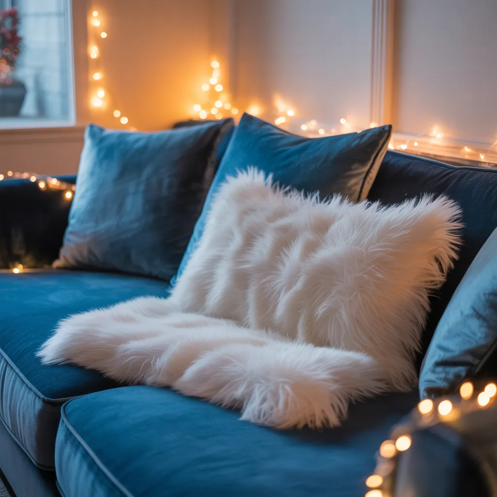 Swap your regular cushions for blue velvet or knit throw pillows during the holidays. Add matching blue blankets or faux fur throws to warm up the room while keeping it stylish.
