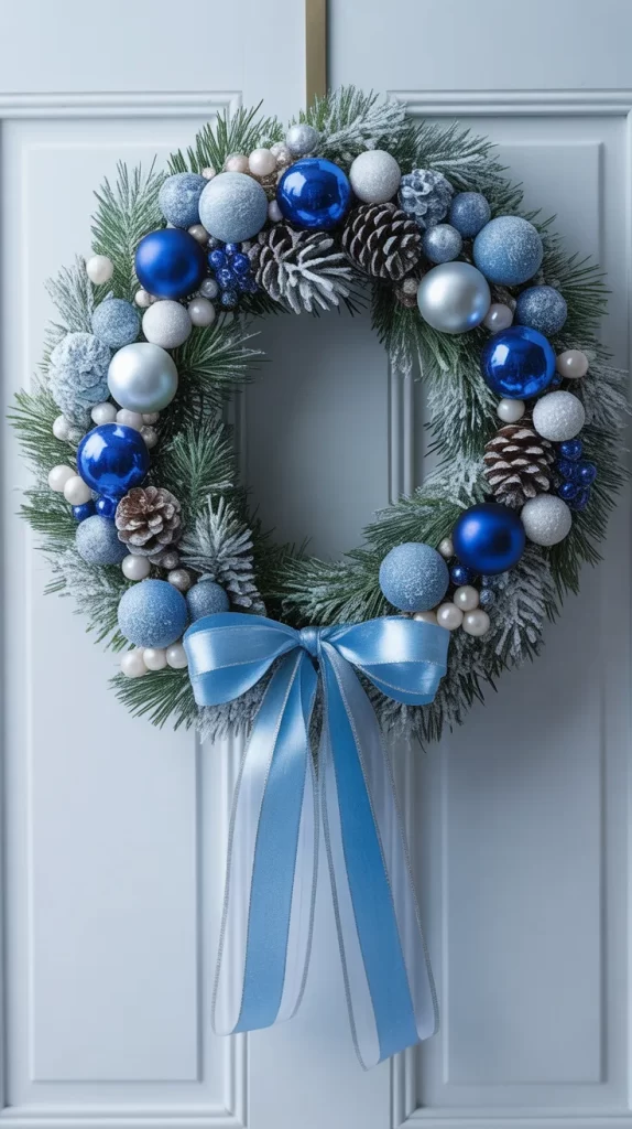 Blue Christmas decor brings a calm, magical, and elegant feel to the holidays. Whether you prefer icy tones, navy accents, or shimmering metallic blues, this palette can instantly turn your home into a Winter Wonderland. The blend of blue, silver, and white adds sophistication and serenity while keeping the festive spirit alive.