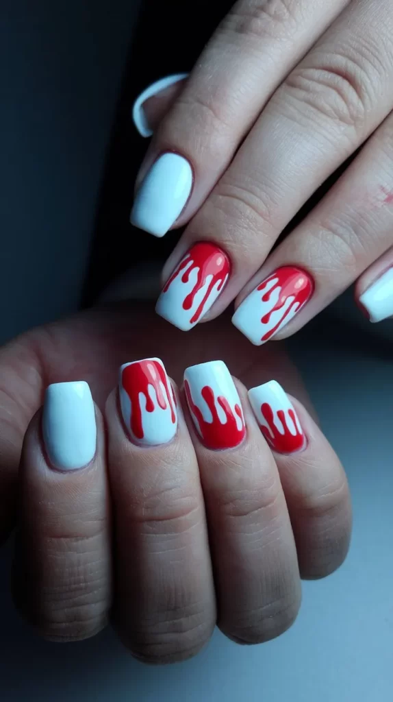 Bloody drip nails add a dramatic and fierce twist to anti-Valentine’s Day designs.