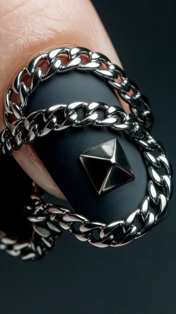 Add real or painted chains and studs to your nails for a punk-inspired anti-Valentine’s look.