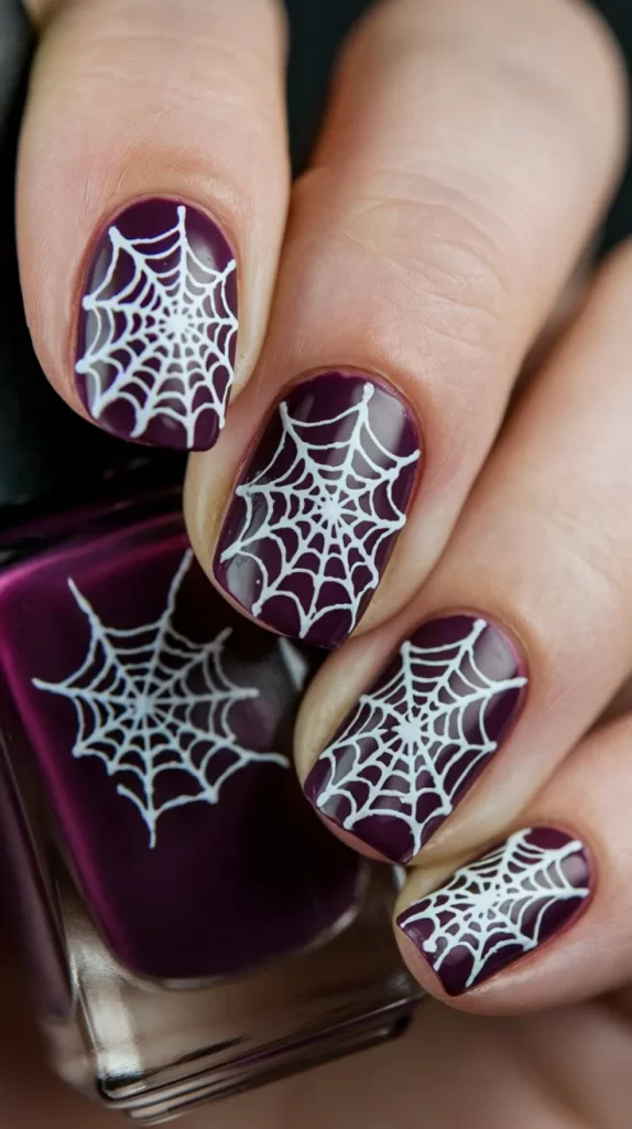 - Use white or silver polish and a fine brush to paint spiderwebs on a few nails.