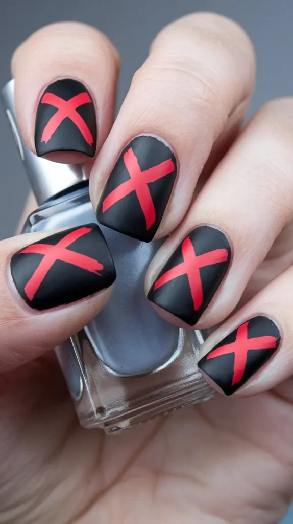 - Use a nail art pen or fine brush to paint XOXO patterns in bold colors like red, pink, or metallics.