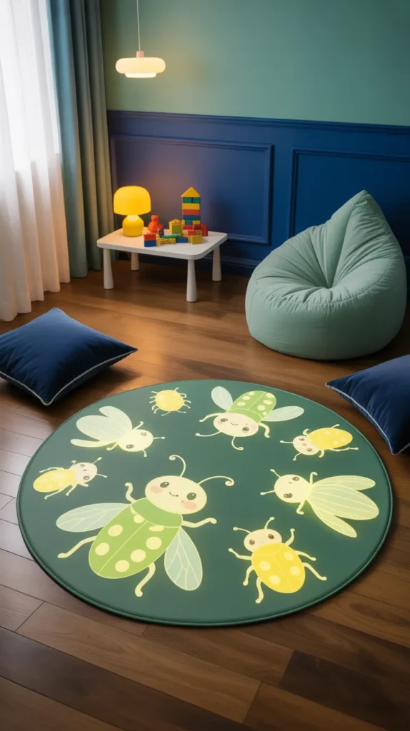 - 15. Glow Bug Round Mat for Modern Kids Decor