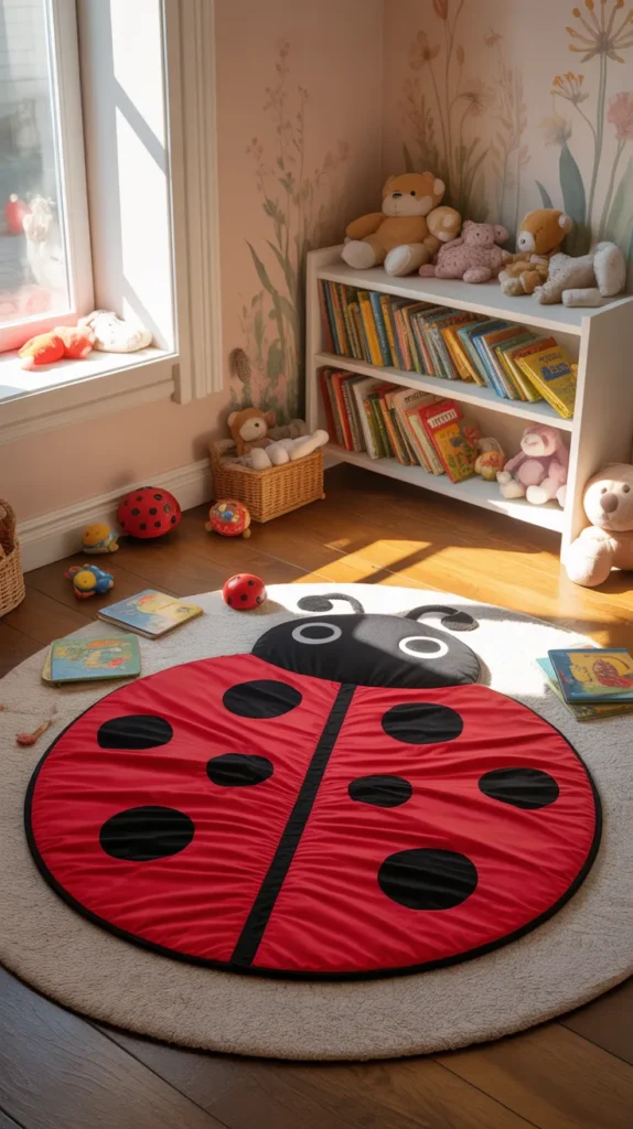 2. Ladybug Round Mat for Cute Red Room Accents