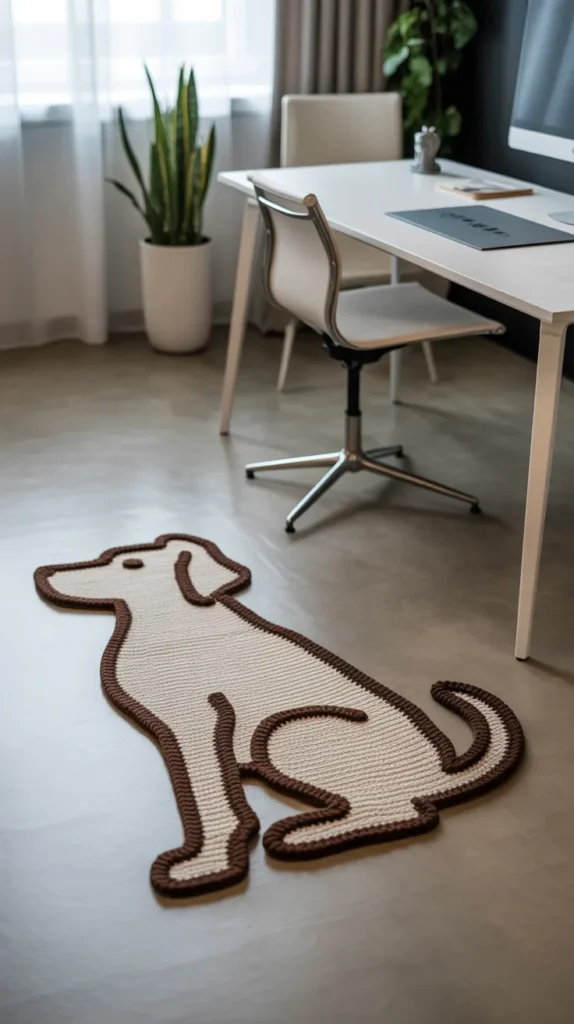 A minimal dog outline mat is perfect for modern homes that prefer simple decor. A clean line design in black, white, or beige gives a stylish look without too much detail.