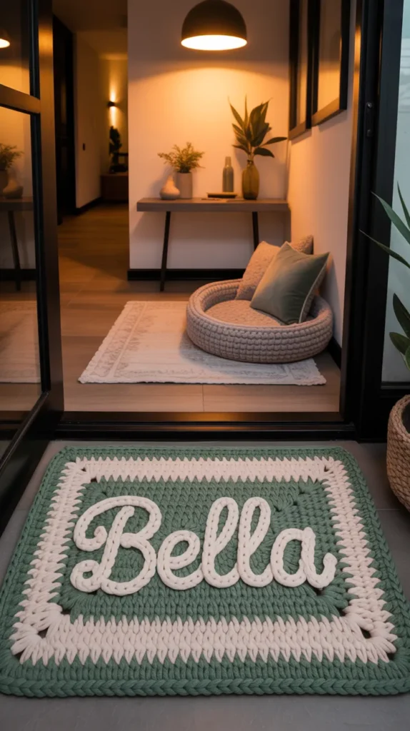 A personalized pet name crochet mat adds a custom touch to your home. You can match the colors to your room and include your cat or dogโs name for extra meaning. It feels special and unique compared with standard decor items.