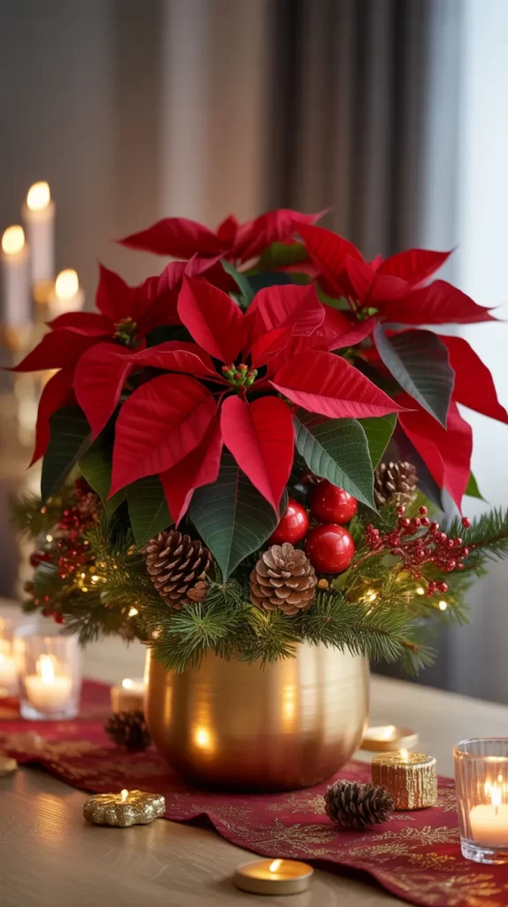 Add a few small ornaments or ribbons around the base to enhance their charm. Poinsettias are great for entryways, living rooms, or as a centerpiece on your dining table.