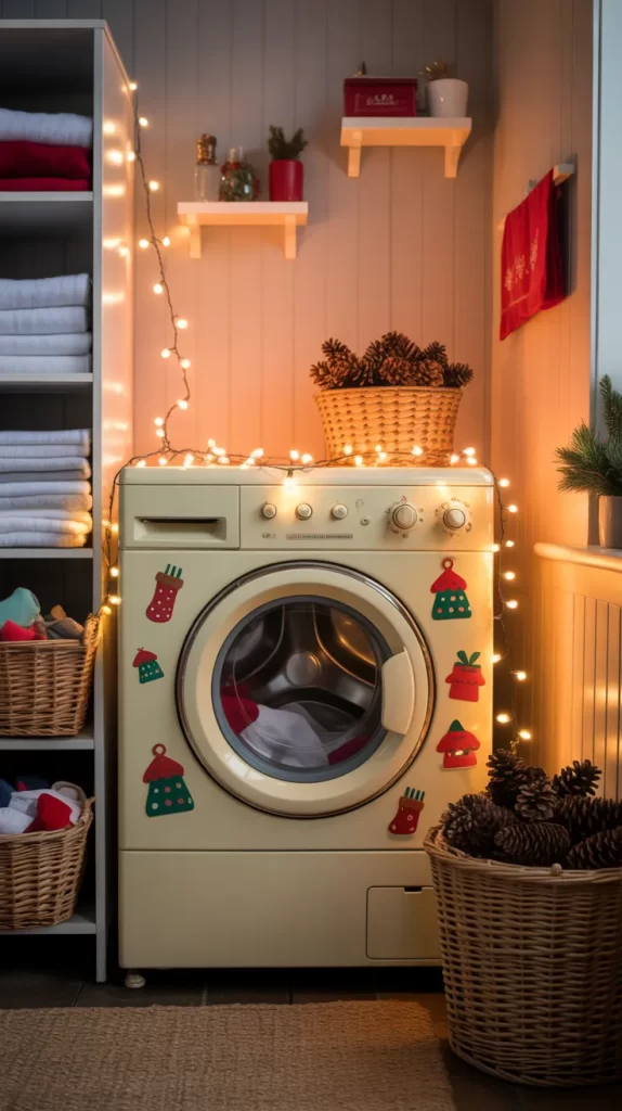 Even the laundry room deserves love! Hang a strand of lights or stick on mini decals like snowflakes or stockings.