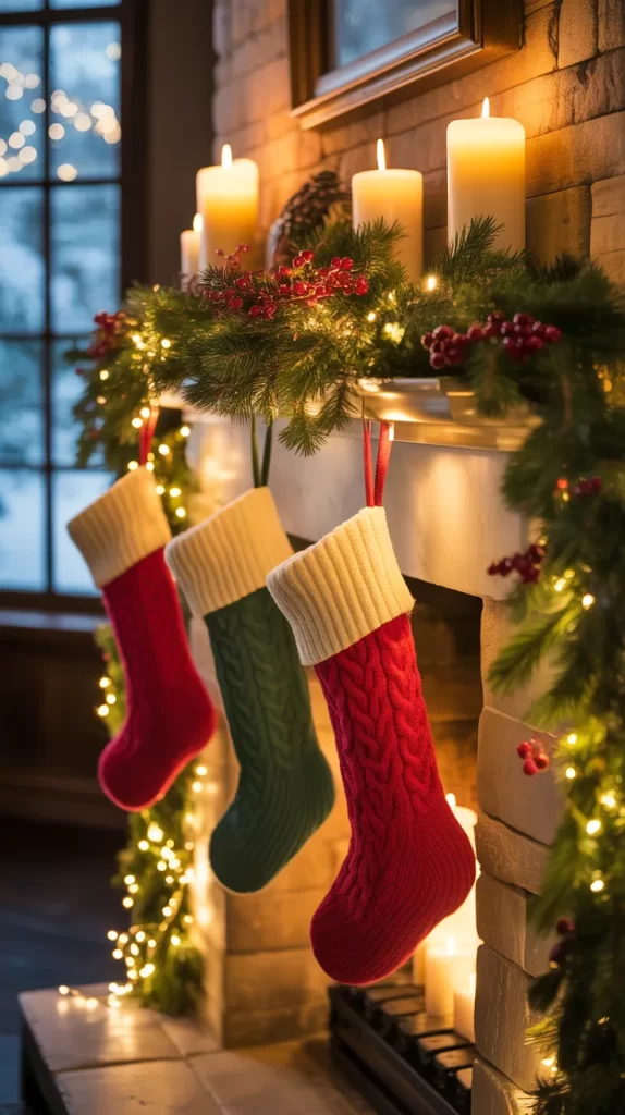 If you have a fireplace, make it the heart of your Christmas decor! Hang stockings, drape garlands with fairy lights, and add mini figurines like Santa or reindeer.