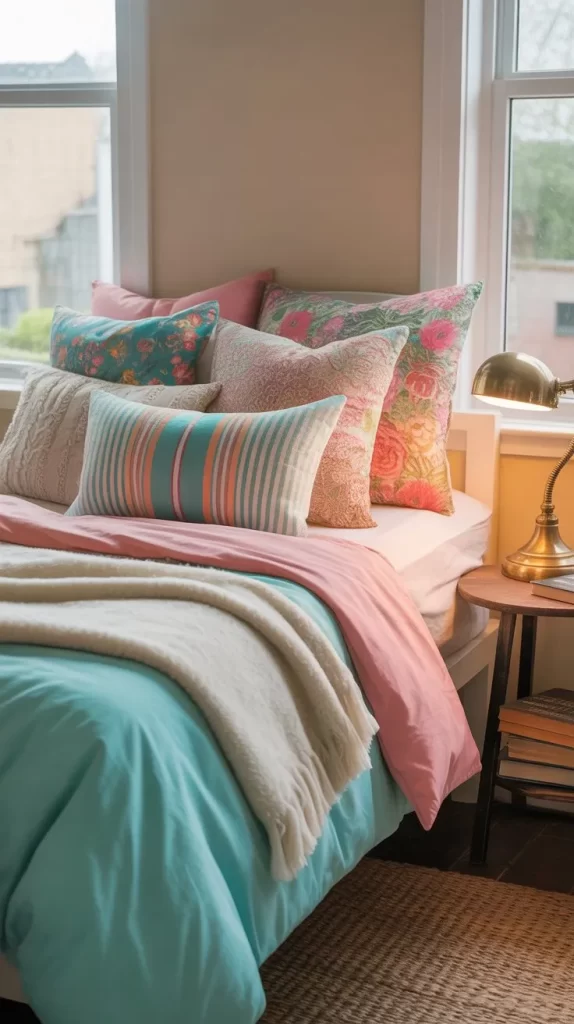 Your bed is the centerpiece of your dorm, so make it pop with colorful bedding. Choose bright sheets, duvets, and pillows in contrasting colors. Mixing patterns like stripes, polka dots, or florals adds personality. Layering different textures, such as velvet pillows and soft blankets, enhances comfort and style. A vibrant bed can uplift the mood of the entire room and make studying or relaxing more enjoyable.