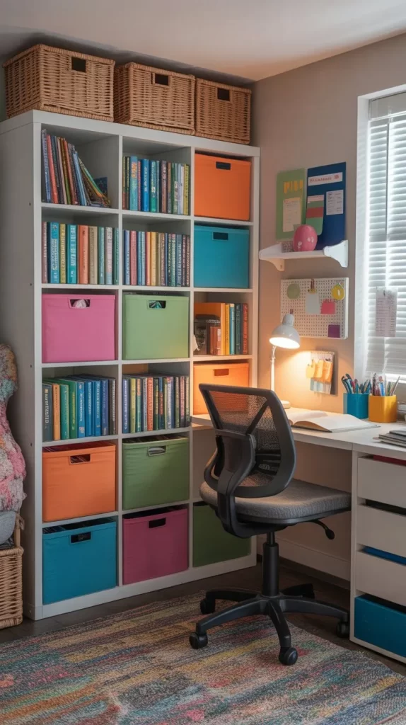 Storage doesn’t have to be boring! Bright bins, baskets, and boxes make organizing fun while adding pops of color. Use different colors for different items to keep your room tidy and visually appealing. Stackable bins save space, and clear colorful containers let you see what’s inside easily. Stylish storage makes your dorm functional without sacrificing style.