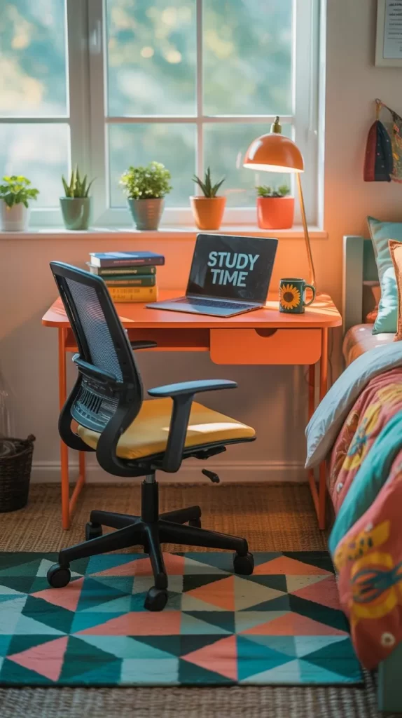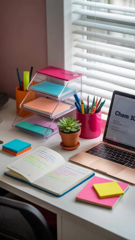 Brighten your study space with colorful desk accessories. Use pen holders, organizers, and lamps in fun shades. Add sticky notes, colorful notebooks, or small figurines for personality. A cheerful desk motivates studying and makes homework less dull. Personalized desk decor turns a small workspace into a vibrant and inspiring area.