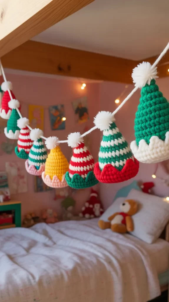 11. Crochet Elf Hats Garland