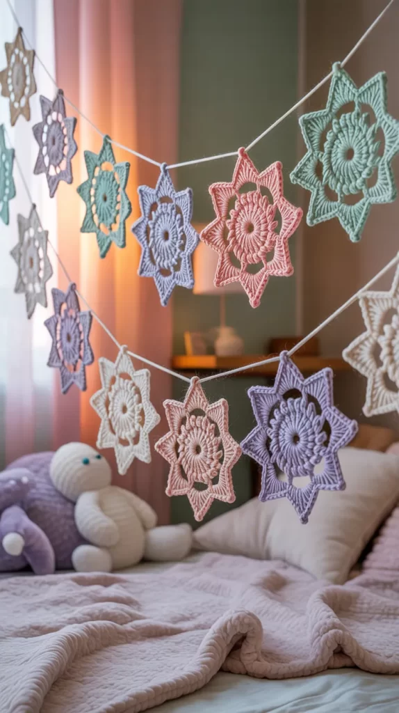 - 6. Crochet Snowflake Garland in Pastel Colors