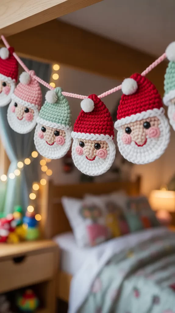 2. Cute Crochet Santa Face Garland